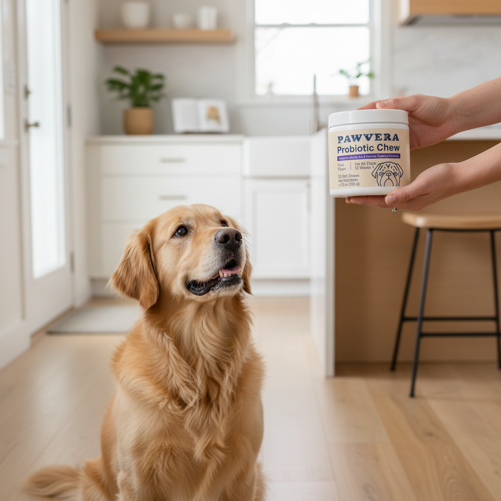 Give your dog 1 soft chew per day for every 25 lbs of body weight. Small dogs (under 25 lbs) need 1 chew daily, medium dogs (25–75 lbs) take 2 chews, and large dogs (over 75 lbs) enjoy 3 chews per day. Consistent daily use helps maintain healthy digestion, gut balance, and overall well-being.